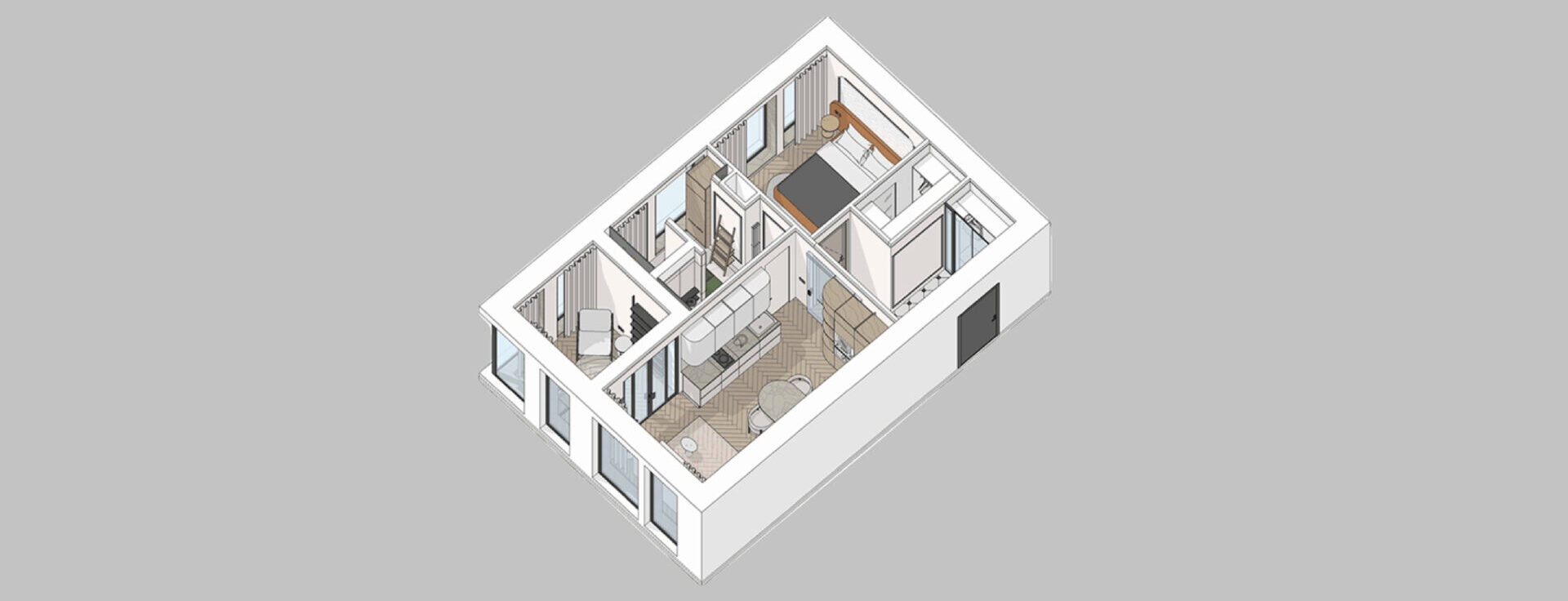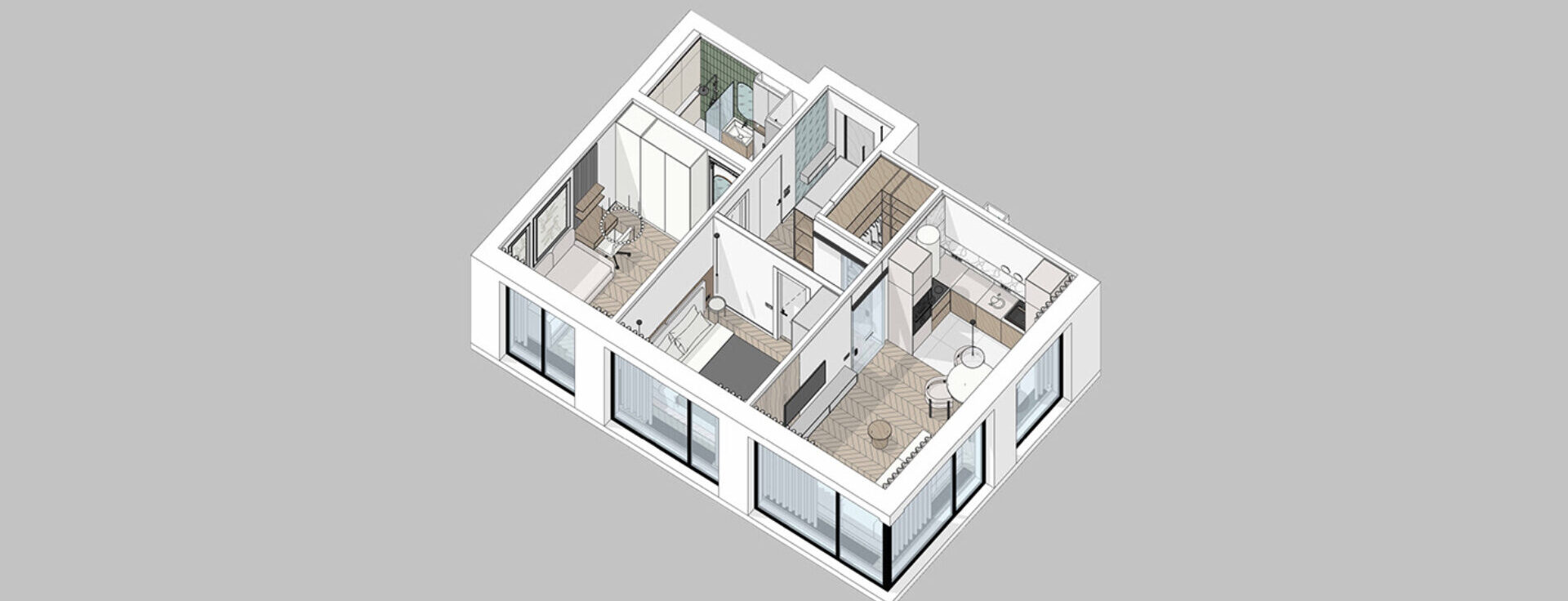 | Revitのベース制作から高品質な内装BIMビジュアル制作まで、CG制作での長年の経験を活かし、制作過程におけるデータのスムーズな | |